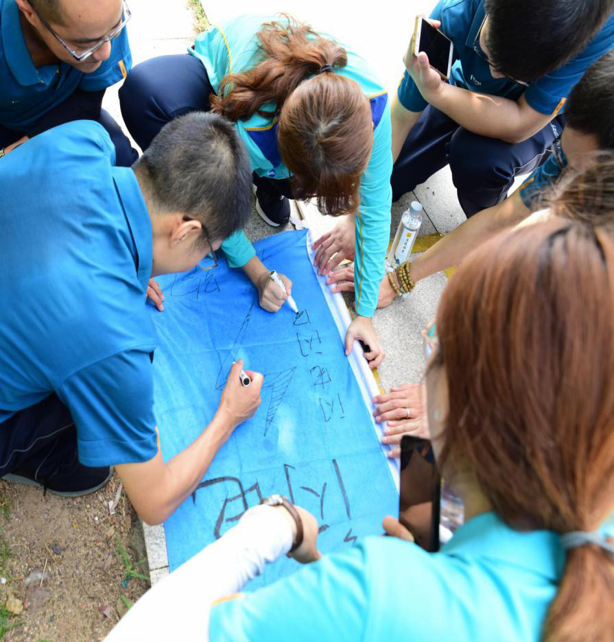 藍隊自我(wǒ)命名“閃電隊”logo是天空中的(de)一道閃電,象征迸發的青(qīng)春活力,口號是“閃電閃電,活力無限”,隊(duì)歌是“奔跑”,紅、藍兩隊各自繪製了自己的隊旗,高(gāo)呼了自己(jǐ)的隊歌,高唱了自己的(de)隊(duì)歌,開始了(le)一(yī)天的團建活動。