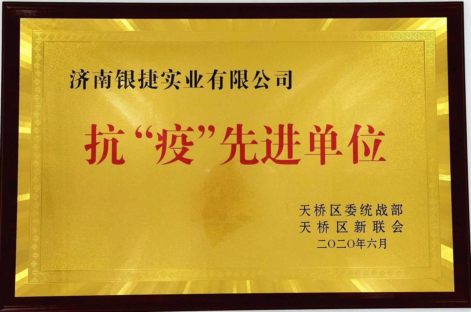 自(zì)新型冠狀病毒肺炎疫情爆發以來,我公(gōng)司積(jī)極響應,第一時間進行捐款活動,堅持每日對辦公樓進行消毒、給員工測體溫,外地(dì)回濟員工隔離14天等防疫措施,為打贏這次疫情防控戰貢獻出了一點微薄之力,卻受到天橋區委統戰部授予的“抗疫(yì)先進單(dān)位”的稱號。對此,我們感(gǎn)到無比的光榮,同時也激發了我們進一(yī)步響應政(zhèng)府抗(kàng)疫號召的意誌。