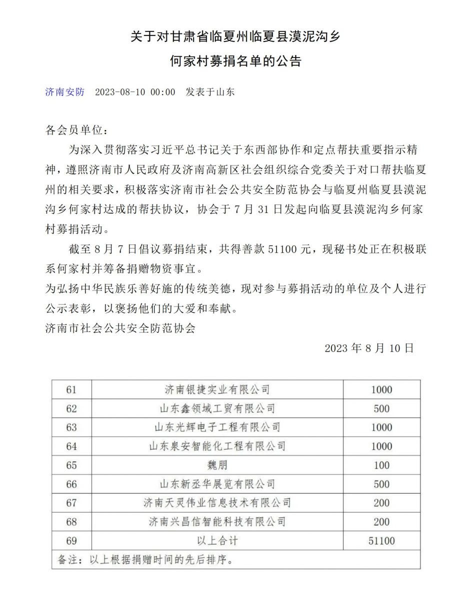 關於(yú)對甘肅省臨夏州臨夏縣漠(mò)泥溝鄉 何家村募捐名單的公告(gào)